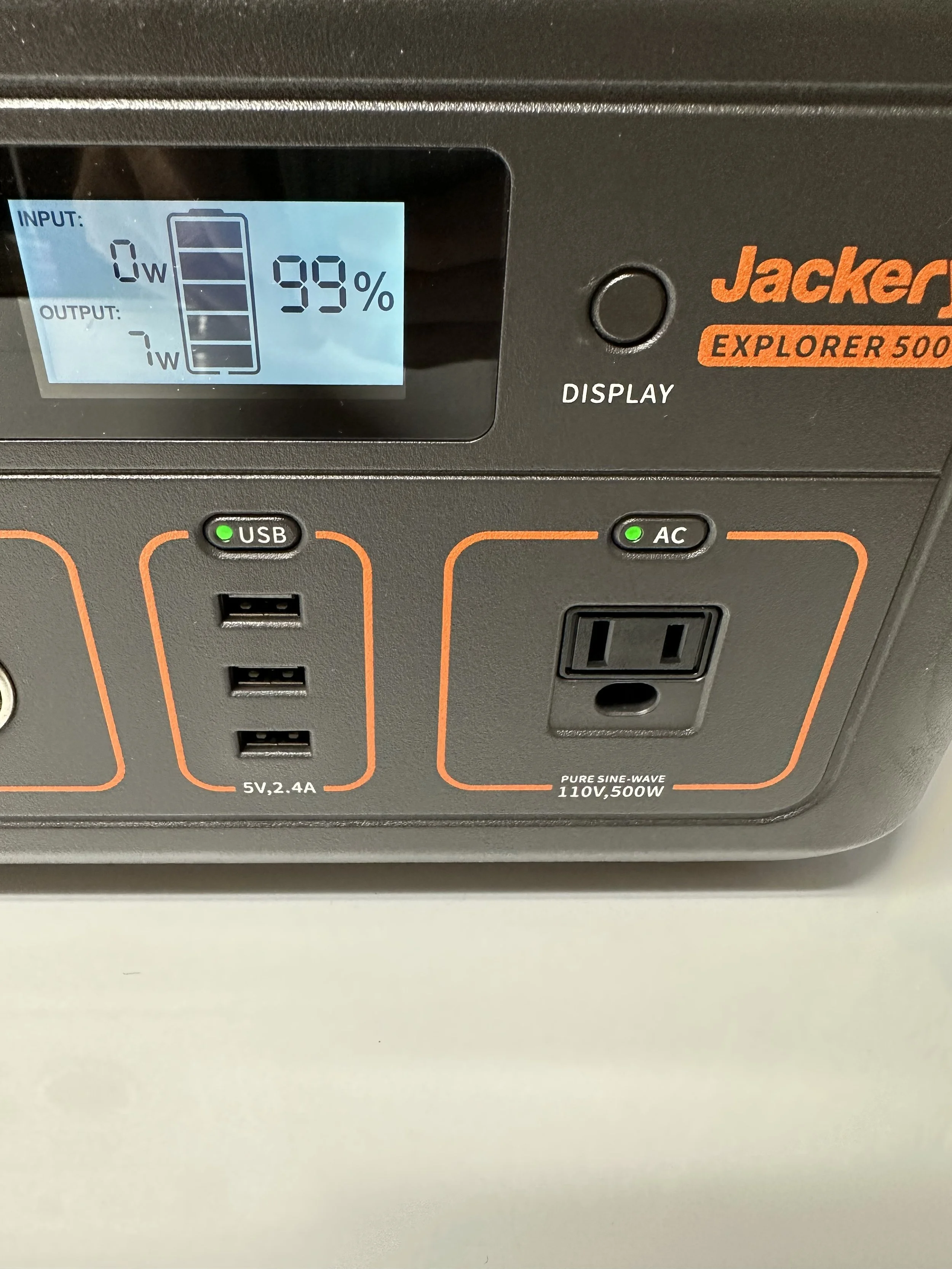 No matter the season, power outages can occur with some frequency on the mountain. In an effort to manage this we have a Jackery 500 portable power station available for use. It can be found in the “kid lounge” on top of the dryer. To use it simply press the button that matches your purpose. For example, if you require USB and/or want to also plug in a lamp, you would press USB and AC and will have power for both. Please note that the AC output port can only charge/power devices that operate at less than 500-Watt. Once exceeding, the Explorer 500 will shut off automatically.